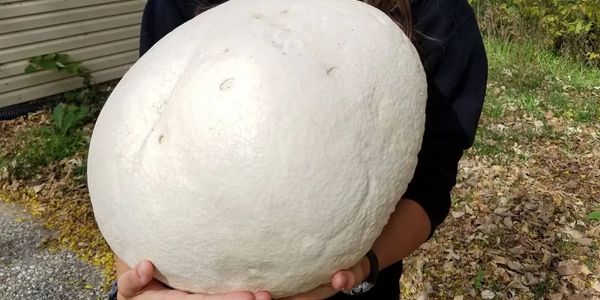 Giant puffballs (Calvatia gigantea) are found in the central and eastern USA and Canada. During late Summer and Fall, look for them in meadows, under small stands of trees, and around forest openings. Puffballs are round or pear-shaped fruiting bodies that contain spores. They sit directly on the ground or on rotten wood.