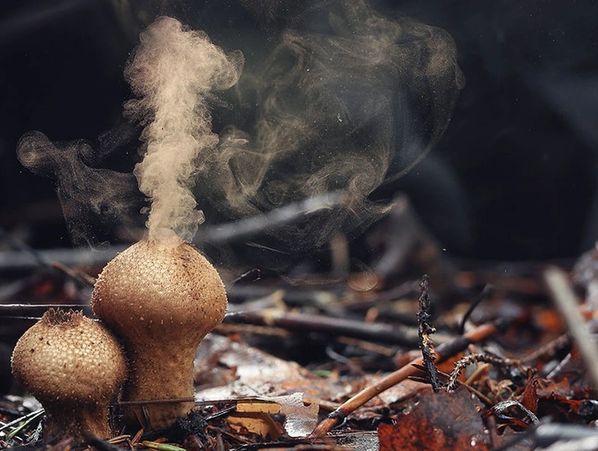A puffball will disperse its spores (about 7 trillion of them!) similarly to other mushrooms that disperse their spores when they come into contact with rain, a breeze, or animals.—hence the name PUFFBALL.