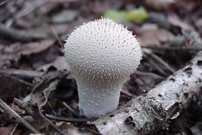 Common Puffball Mushroom (Lycoperdon perlatum): The common puffball mushroom is a small to medium-sized mushroom that is typically found in grassy areas or woods. It has a round shape and a white, smooth surface that becomes brown and scaly as it ages.