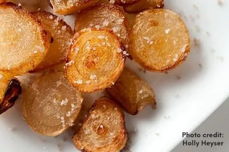 Thse knobby tubers are actually the edible roots of a now native North American sunflower species!,